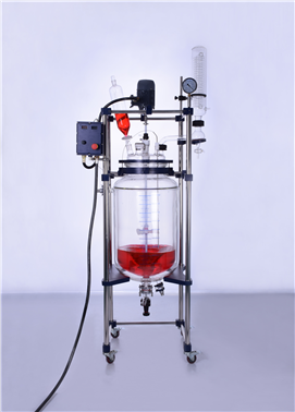 本玻璃反應器由GG17高硼硅玻璃與304不銹鋼材料制成,包括釜蓋、釜體(雙層玻璃反應器)、冷凝器、蒸餾瓶、恒壓滴液漏斗、攪拌器、304不銹鋼井字架、低溫循環油浴鍋等部件組成。具有透明、耐腐蝕、耐高溫的特性,便于操作者觀察釜內介質的反應變化各被攪拌的情況,非常直觀,安全可靠。攪拌方式為機械攪拌機械密封,攪拌力強,無泄漏。