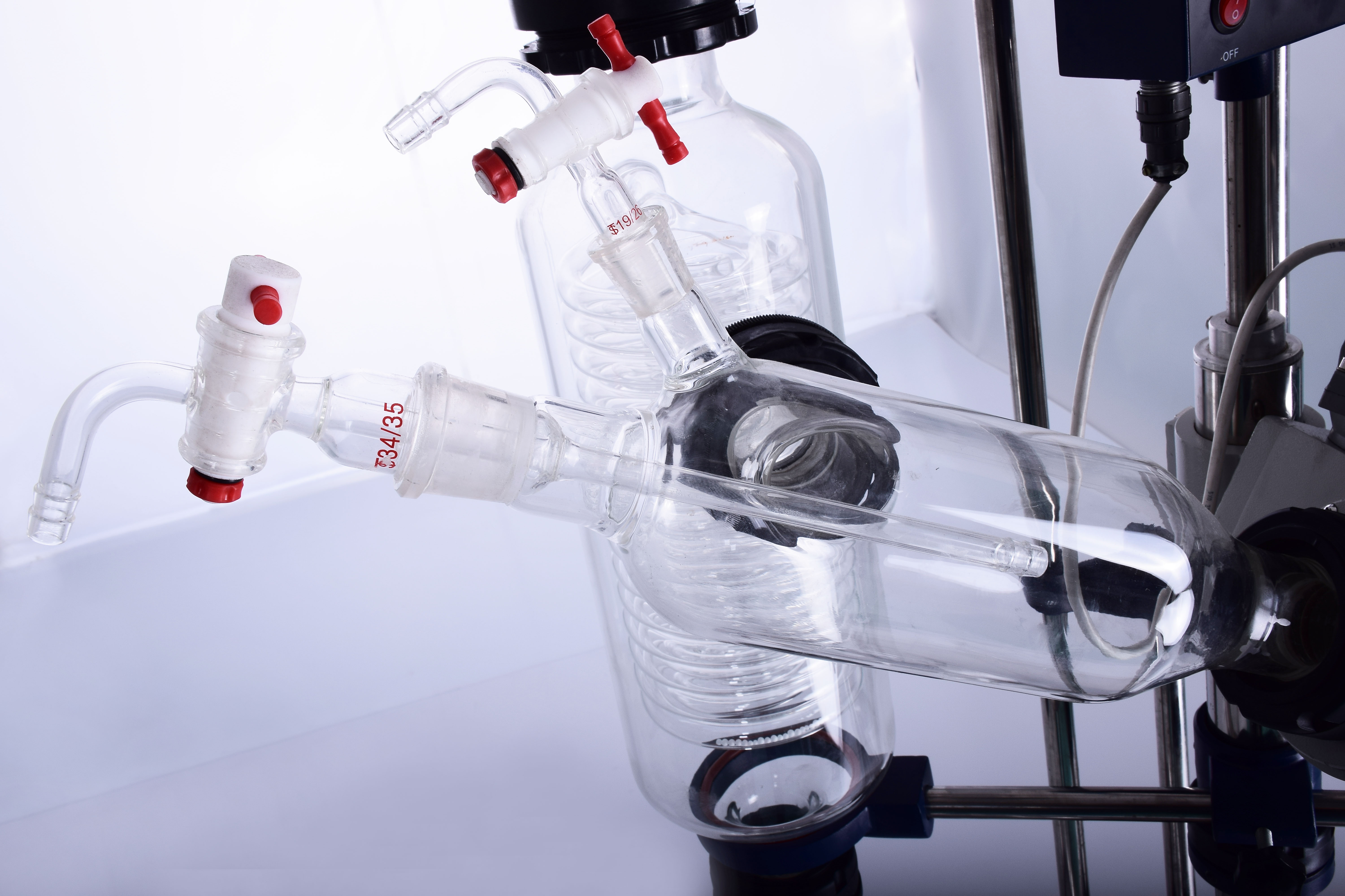 旋轉(zhuǎn)蒸發(fā)器還可能包括其他輔助部件,如升降手柄、控制面板、加料閥等,以確保設(shè)備的穩(wěn)定運行和操作的便捷性。這些部件共同協(xié)作,使旋轉(zhuǎn)蒸發(fā)器成為一種高效、可靠的蒸發(fā)設(shè)備,廣泛應用于化學、化工、生物醫(yī)藥等領(lǐng)域。